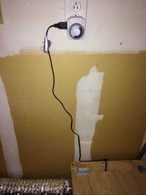 Cableado una bombilla de luz LED para encender a través de sensor de movimiento para la luz del baño que la caja está conectada a. Cuando el gato entra en la habitación para hacer sus negocios, la luz se enciende automáticamente para ellos. Por otra parte, el ventilador enciende y apaga con intervalos específicos durante todo el día para ayudar a reducir la electricidad. Información completa... mi ventilador de computadora delapitada pateó el balde temprano, así que terminé reemplazándolo con un apagado el ventilador de escritorio estante. Sin problemas desde entonces.