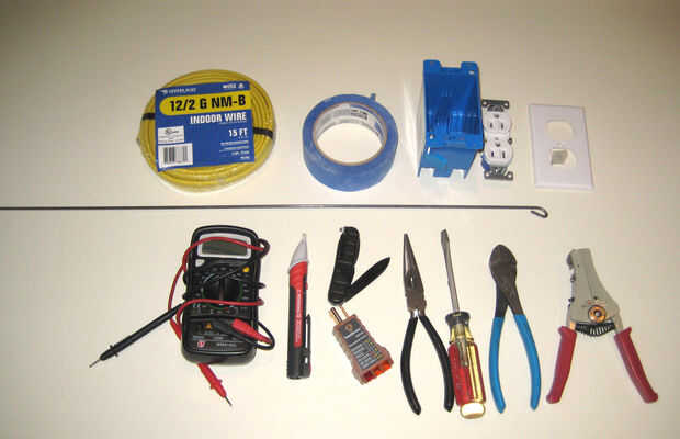 10. pelacable o un cuchillo para quitar el aislamiento. Las strippers son bueno tener, pero el cuchillo se tira del alambre y dividir la cubierta externa de Romex, que los peladores de alambre no.
