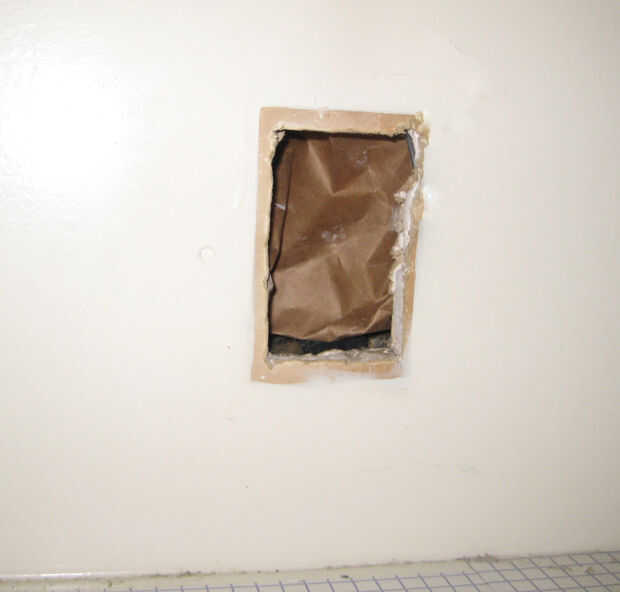 Taladre un agujero de una pulgada por el yeso o panel de madera en una esquina de ese contorno. Utilice una sierra o vaivén para cortar una abertura rectangular en la pared posterior. Recuerde que puede ser los cables dentro de la pared en el cual eres la perforación o corte y no quieres dañarlo. El yeso en el fondo de mi armario era viejo y muy friables y no bordes afilados.
