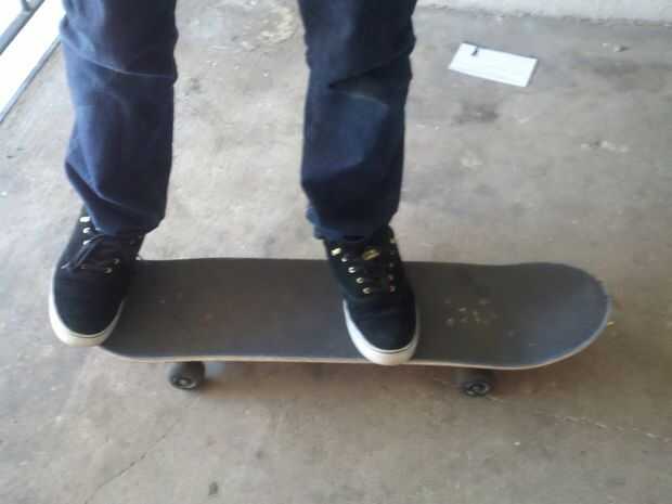 las cosas que usted tendrá que hacer este truco de principiante con éxito son1. patinar zapatos (yo uso Vanz)2. patín3. plana / lisa superficiePaso 1: Necesita colocarse en el tablero con un pie en la cola (extremo posterior del patín) y la derecha d