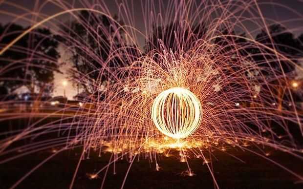 Después de reunir materiales, encontrar una ubicación y configuración de la cámara, saque una parte de la lana de acero de la caja y coloque en el extremo de la varilla (a veces ayuda a aflojar la lana de acero antes de relleno en la boca). Asegúrese de que usted conecte el cable/correa u otro elemento a la lana de acero del oscilación y batir todo. La lana de acero con batería de 9 voltios o un encendedor de la luz. Una vez que prende fuego o alerta alguien para iniciar la exposición larga o utilizar un control remoto para accionar la persiana para liberar.