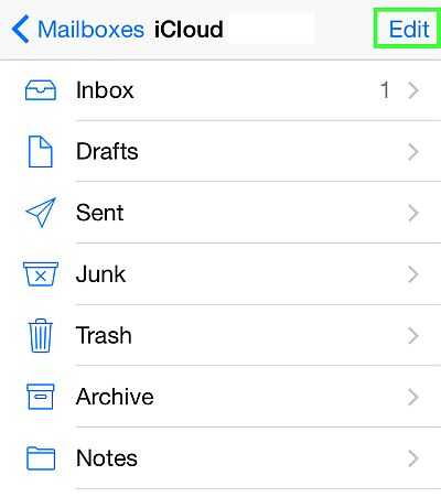 Una vez en tu buzón de correo de iCloud, pulse "Editar" en la parte superior derecha de la pantalla.