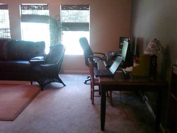 Tenga en cuenta, no se trata de una cosa a la habitación una sola vez. Probablemente se vaya hacia adelante y hacia atrás, cambiar las cosas una y otra vez hasta conseguir el aspecto que desee. Ver fotos del desván de aterrizaje grande en la parte superior de la escalera utilizada como oficina y sala de estar. Fue reorganizado varias veces.