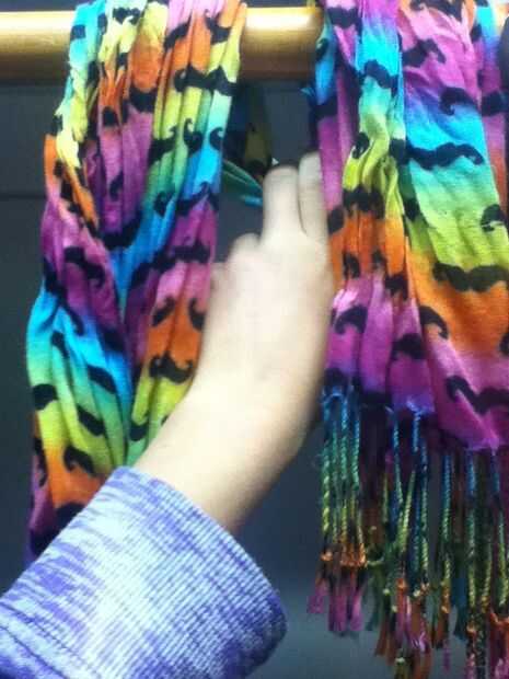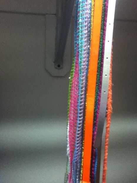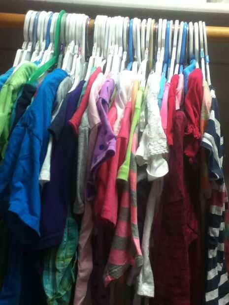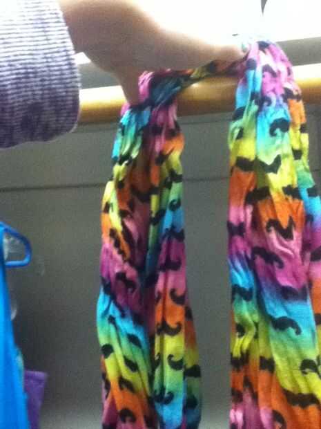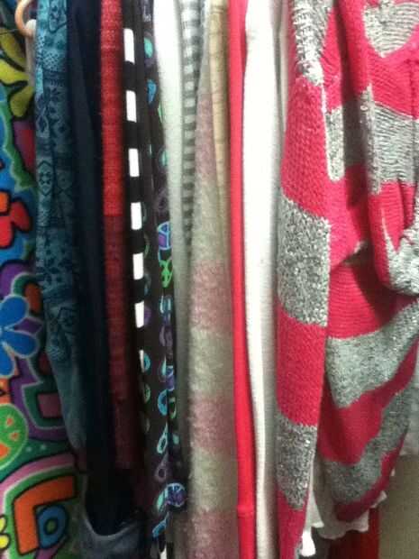Primera es ropa cuando cuelgo mi ropa me gusta catalogarlos en tanques, manga corta, manga larga y vestidos. Y por el lado de ésos poner unas perchas o tendría un cubo de suspensiones ahora bufandas y podría colgar tus bufandas cinturones y correas en la misma barra pones la ropa podría envolver la bufanda como doblarlo por la mitad y coloque en la barra y participar en bucle y traer t al revés y bucle a través de la otra parte