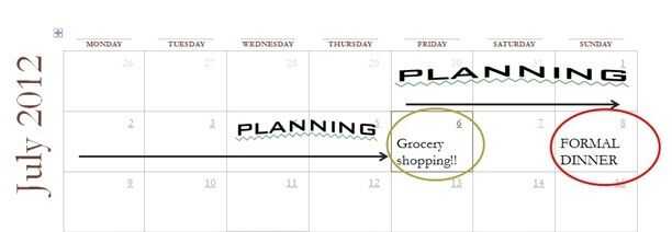 En primer lugar, comienzo aproximar algunos días cuando puede albergar el evento, pregunte a la gente en sus horarios ver lo que otros eventos van alrededor de en aquel momento y luego finalmente tomar una decisión sobre la fecha. Varía de persona a persona en la cantidad de tiempo necesario para pensar en un evento y hacerla hermosa. También siempre hay cosas impredecibles que pueden suceder, que podría ser un obstáculo para una cena formal.