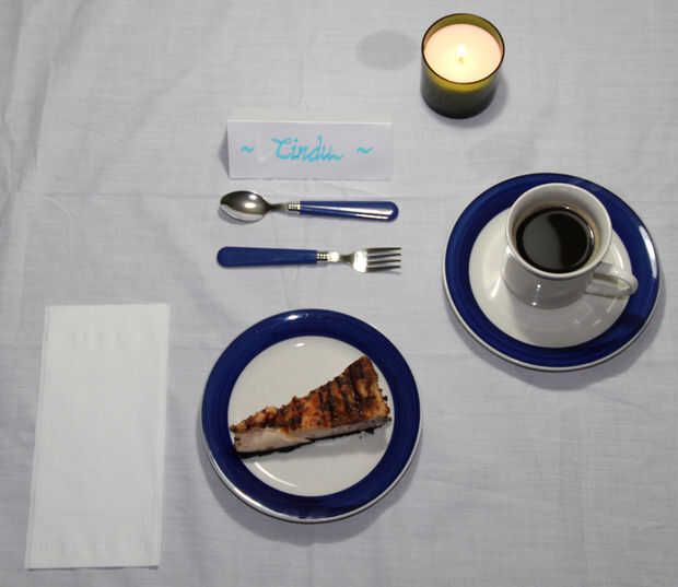 Este es el momento donde sirven la bebida caliente con el postre de su elección. En este tiempo la placa de "plato principal" y los cubiertos adicionales como el tenedor, cuchillo y cuchara deben ser quitados.