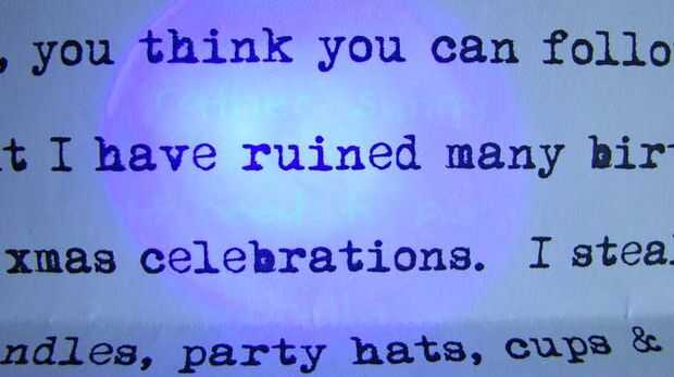 CLUE6: El sobre dirigido a Romeo Bravo (el agente con la pluma de tinta invisible) contiene una nota diciendo "carta deGeneral Tantrum dijo más de lo que parecía. Tal vez uno de ustedes podría brillar algo de luz sobre el verdadero significado. A veces necesitas leer entre líneas para resolver un misterio". Brilla la luz de tinta invisible en la carta de rabieta revela el siguiente mensaje "es bastante soleado hoy... necesita... poner la sombrilla"