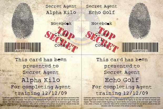 Al mismo tiempo que las etiquetas de cuaderno (con en pareja impresiones del pulgar), también hice certificados de graduación para la terminación de la formación de la Agencia. También imprimí sus nombres del agente hacia fuera para agencia mugshots cuando llegan (éstos se utilizan para hacer tarjetas de agradecimiento después de la fiesta). Trabajo de mi hijo de 5 años de edad fue a saludar a los huéspedes por enseñarles un golpe secreto para acceder a la entrada de la Agencia. Estándar spy gear fue distribuido y las fotos fueron tomadas (para tarjetas de agradecimiento más adelante). Los niños colocan sus regalos en una mesa con el pastel de cumpleaños y súper mientras todos los invitados llegaron y fueron procesados.