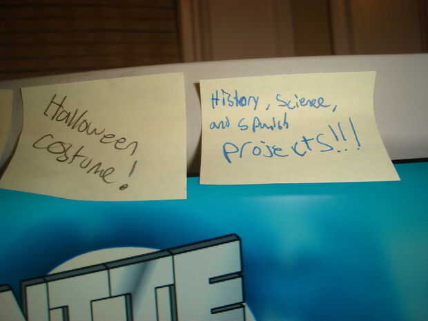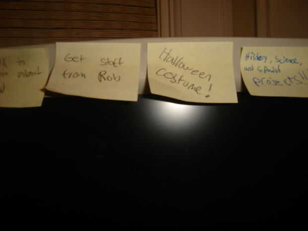 I siempre fue olvidar mis proyectos y se adelgaza, así que decidí utilizar un sistema genérico de recordar a mi mismo, notas post-it!!! Una vez que he terminado con los objetivos, me gusta poner un cheque grande a través de ellos! Se siente tan bien!