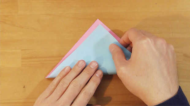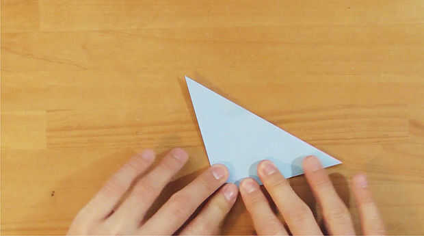 Doblar en la mitad derecha a la izquierda, diagonalmente y desdoblar.