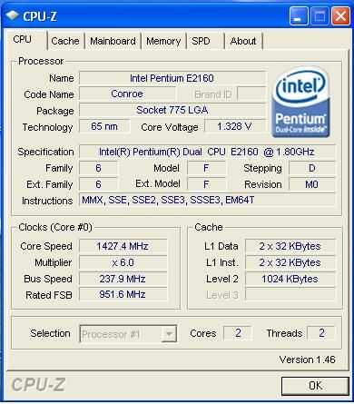 Para verificar estadísticas básicas con respecto a su CPU, sugiero fuertemente que usted descarga la utilidad CPU-Z: