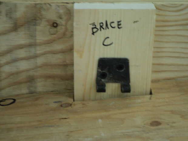 Las ranuras hacia abajo sobre la madera de apoyo vertical y se corta para tener espacio suficiente para deslizar por incluso en un ángulo de ~ 15°--que es exactamente la cantidad de tolerancia necesaria.