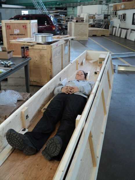 ¿Un toque de genio del American Repertory Theater? Dejaron todo el rollo de "Esta manera para arriba" cinta de flecha para el etiquetado de la caja.