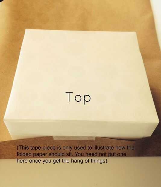 Doble la parte inferior delantera de su papel de embalaje de manera más de la mitad de la profundidad de su caja.