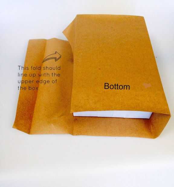 A continuación, te darás cuenta que tienes unas pulgadas de papel sobrante en el lado. ESTO ES INTENCIONAL! Queremos doblar hacia arriba y sobre a la cima (nuevo) de nuestra caja y crear un pliegue. Usando ese pliegue, plegar papel completamente. El borde doblado ahora debe coincidir con el borde de la caja