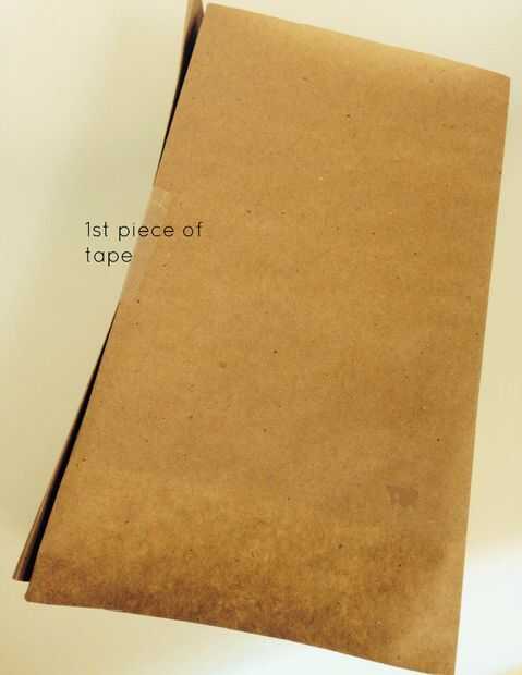 Coloque su primer pedazo de cinta en el borde, lo más cerca del verdadero centro de su caja como sea posible