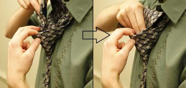 Tomar el extremo ancho y empújela hacia abajo a través del agujero que acaba de hacer, luego agarra el extremo ancho de abajo y páselo a través suavemente.
