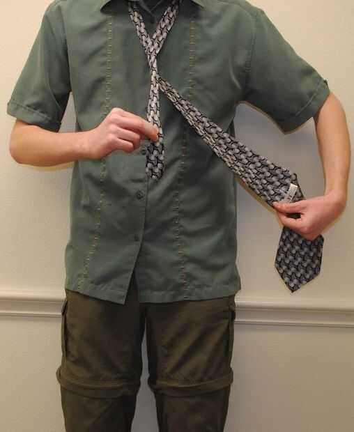 cómo atar un nudo de Windsor Double(x2) en unos sencillos pasos.Paso 1: medida La longitud de la corbata antes de atado es esencial a la longitud del producto final. Elegir su longitud.Paso 2: Crossover. Cruce el extremo más largo de la corbata sobre
