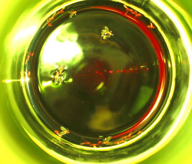 La botella de vino no supone ser una trampa. Lo dejé por accidente en el otro extremo del mostrador. Todas las moscas volaron allí y murieron.