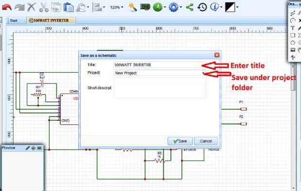 Una vez finalizado el dibujo, guardar el esquema bajo nombre del proyecto para que pueda hacer la simulación.