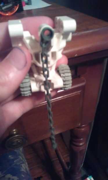 Luego tomar dos engranajes medianos y conectar para atornillar piezas. a continuación tomar una cadena y fije. (En cualquier lugar de su elección, no tiene que conectar.) A continuación tome un conector negro y el ataque a la derecha. luego coloque una unidad star wars R2.
