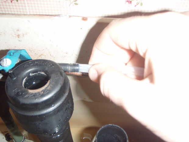 Continuación, conecte el tubo en los agujeros que ha perforado a la entrada (I) en el envase.