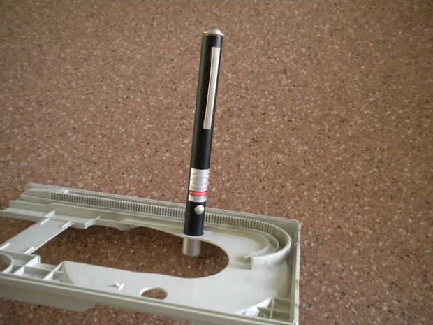 La unidad de cd que utilicé tenía agujeros que eran clasificados perfectamente para permitir que el láser para caber comodamente. Dependiendo de los diámetros de su unidad de cd y láser este paso puede ser muy fácil o puede requerir pasos adicionales y materiales.
