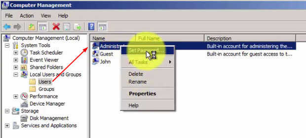 -Para establecer una contraseña, haga clic en usuario Administrador y seleccione Establecer contraseña, escriba la nueva contraseña