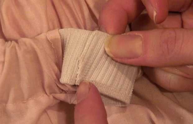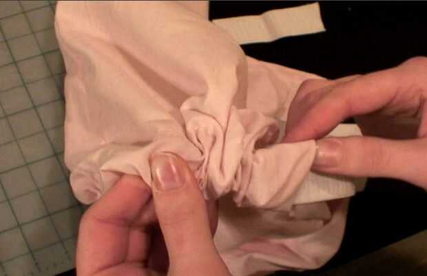 9. ahora el elástico por la parte delantera de los boxeadores de la alimentación mediante una horquilla o pasador de seguridad. Coser juntos los extremos de su elástica y meter en la caja.