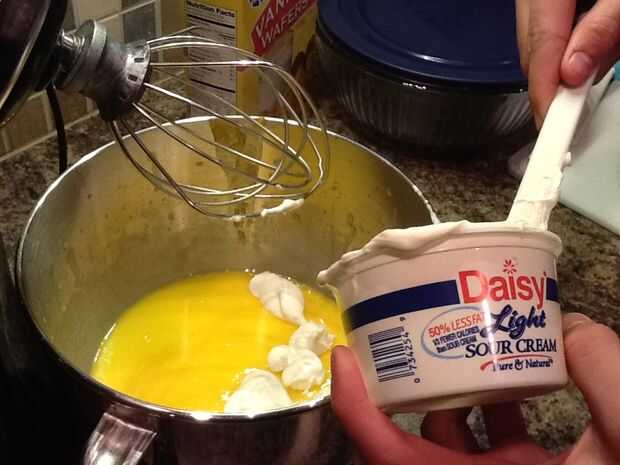Una vez que se han mezclado con la leche y leche juntos luego agregue la caja pequeña de crema agria.