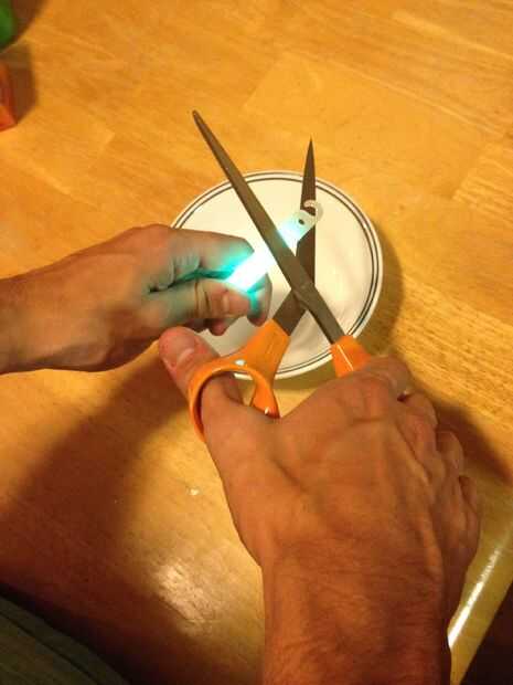 ** Hacer esto sobre un tazón de fuente para coger glowstick productos químicos que se pueden derramar.