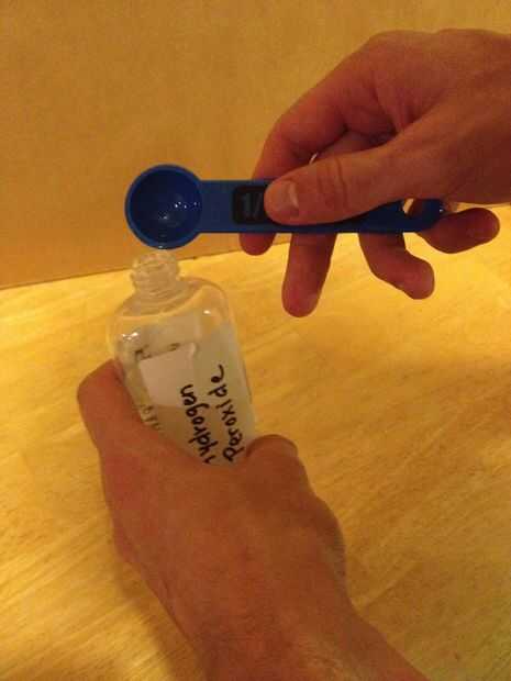 Añadir una y media cucharadas de peróxido de hidrógeno.