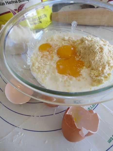 (Si tu mezcla para molletes de maíz requiere de huevos, y reducir un huevo de esta receta, por lo que todavía tendrá 3 yemas)