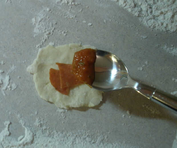 Sugerencia: la masa pega mucho mejor si usted puede evitar salsa en los bordes que se intenta engarzar juntos