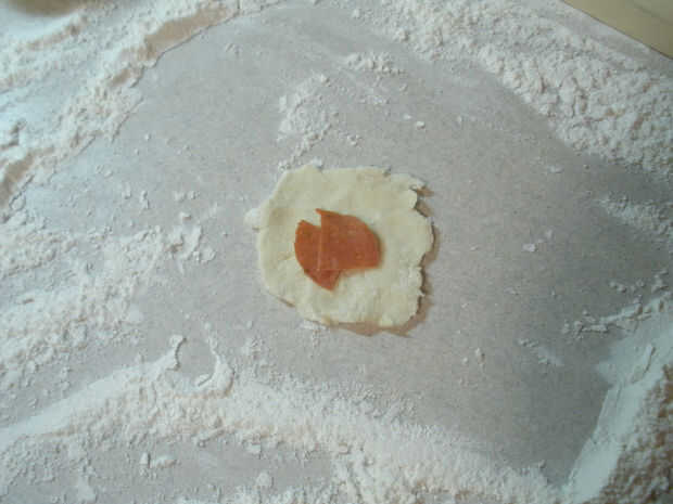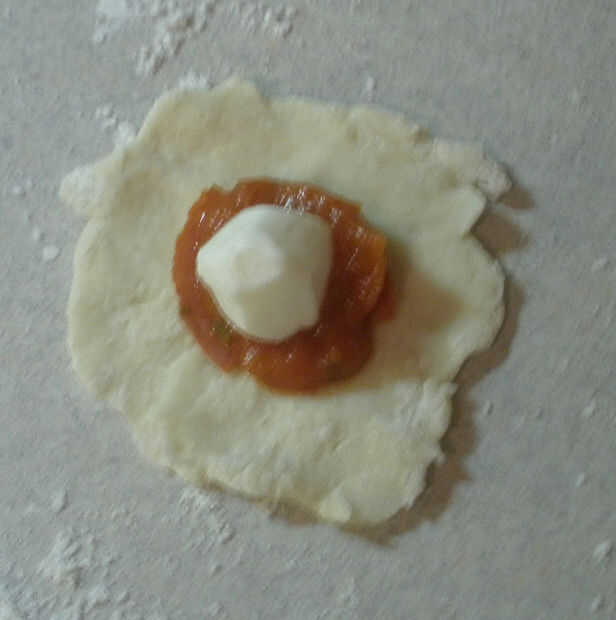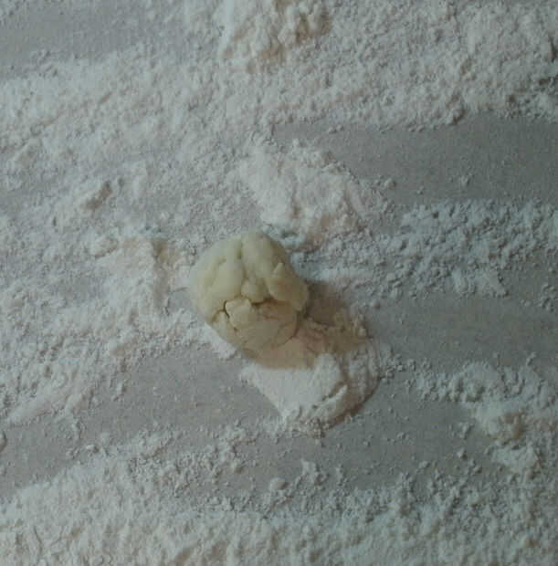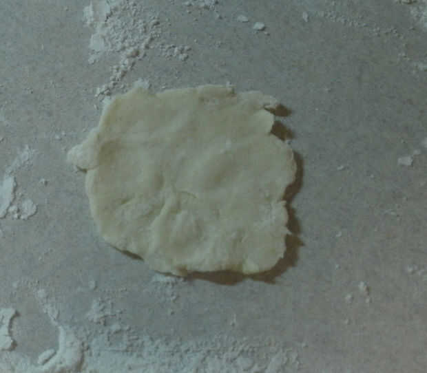 2.) comience por aplanar la masa hacia fuera en 3" pieza plana diámetro de masa