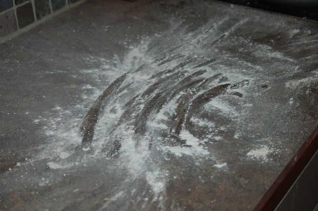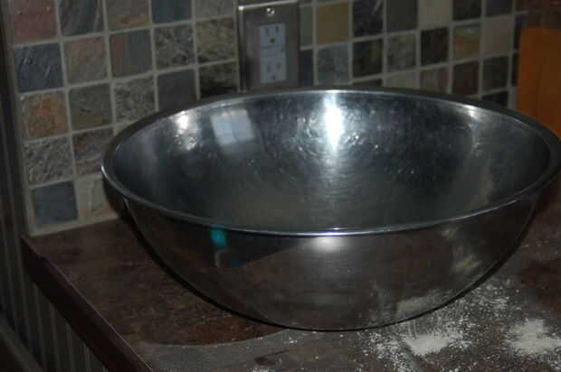 Mientras esperas que levantan sacar un tazón de pan metal grande grasa con crisco, guarde todo pero el crisco y harina y precalentar el horno a 350. Limpie una parte de su armario y ligeramente harina.