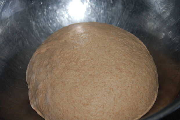 Una vez que el pan se hace harina mezcla su manos y tome el tazón de fuente y sacar aunque masa en la parte enharinada de su armario. Forman este trozo de masa en una bola. Tomar la pelota y ponerla en un recipiente engrasado grande, cubierta con el abrigo de saran, colóquelo en un lugar tibio (yo pongo minas por el respiradero del horno que, en la mía, está bajo el panel de control en la estufa) por lo que aumentará más rápido y déjelo reposar otros 20 minutos. Usted puede decir si se realiza levantamiento pinchándola suavemente. Si la abolladura desaparece rápidamente todavía necesita sentarse, pero si tarda mucho tiempo para que se vayan entonces hacerlo.