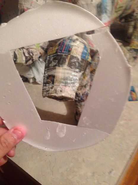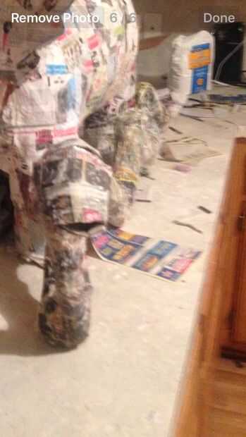 Extienden sus dos suspensiones del alambre, únase a ellos en el centro y comenzar con mezcla de papel maché y las tiras de periódico, hacer todo el camino alrededor asegurándose de que sus dos llantas suspensiones estancia juntos para este proceso (cinta gorila hará el truco) hacer esto un par de capas hice 6 y asegúrese de que su gancho de alambre se coloca la forma que desee , después de su papel maché esto... Theres no volver, una vez dicho esto dar es una buena 24 a 36 horas por capa se seque completamente, ahora sobre la cara... Inicio platos de papel w y empezar por hacer una cara con anadeaban periódico y las placas para la forma de la cara, ahora comienzan otra vez junto a ellos junto con las tiras y la mezcla de papel maché, hacer una forma de corazón al tamaño de los ojos y una plazas de boca., añadir una lengua