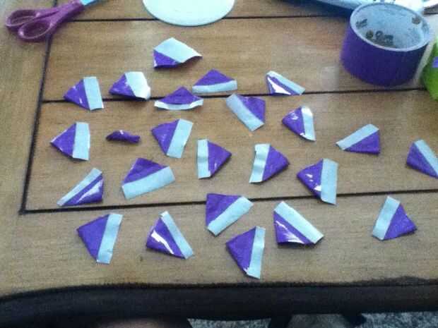 Paso 1: Lo que necesita Conducto cinta (cualquier Color)TijerasReglaSharpiePaso 2: Cortar la cinta Haz cortar aproximadamente 2 1/2 pulgadas de cinta.Paso 3: Haga otro corte Realizar corte de 1/4 pulgadas de profundidad, pero sólo la mitad del camino