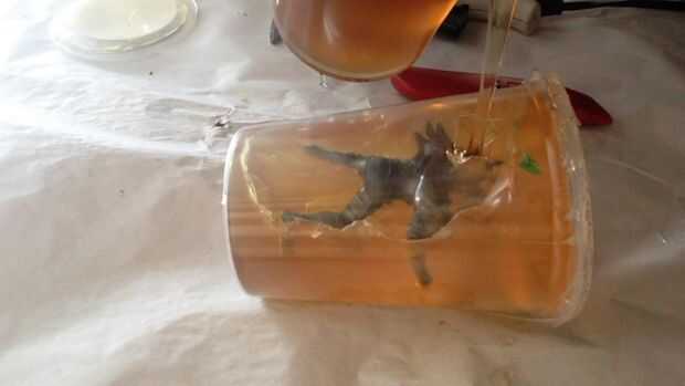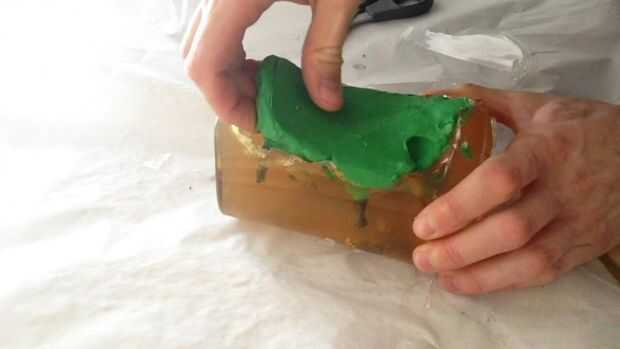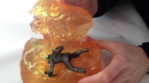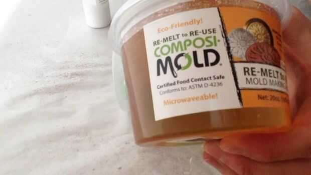 Mientras la burbuja Buster está todavía húmedo, vierta la ComposiMold derretida hasta que cubra toda la mitad expuesta de caballero. ComposiMold se puede derretir en el microondas, a baño María o un fundidor de chocolate.
