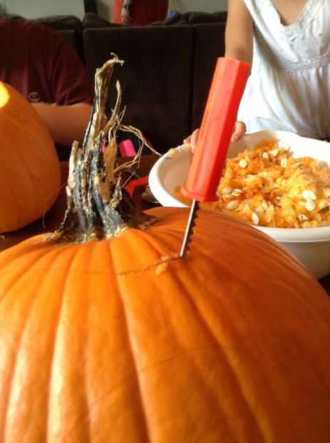 Después de tener la calabaza está listo para empezar a tallar lejos, el primer cuidado que necesita hacer es iniciar con la talla de la parte superior de la calabaza por el tallo. Tallar un círculo alrededor del tallo, por lo que se puede quitar.