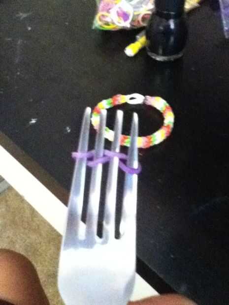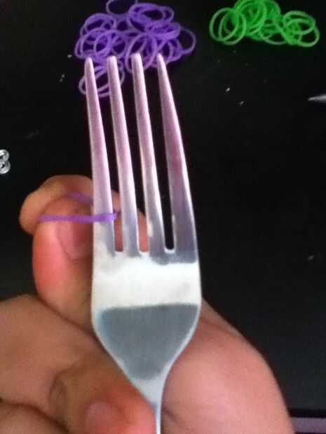 Cómo para hacer un Hexafish goma banda pulsera (con un tenedor) (2 / 9 paso)