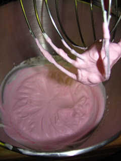 Pongan un poco más de la mitad de la nata en el recipiente. Tomar la mezcla de bebida y viértala en el bol con la nata. (Algunos de la bebida se mezcla puede ser muy tarta así inicio apagado usando la mitad del paquete, mezclan con la crema batida y probarlo pero si quieres más sabor, acaba de poner toda la mezcla de bebida en la nata). Tome la cuchara o batir y mezclar la crema batida y beber mezcla juntos hasta que el color de la mezcla de la bebida se mezcla uniformemente en la crema batida y hasta que la nata es lisa y gruesa.