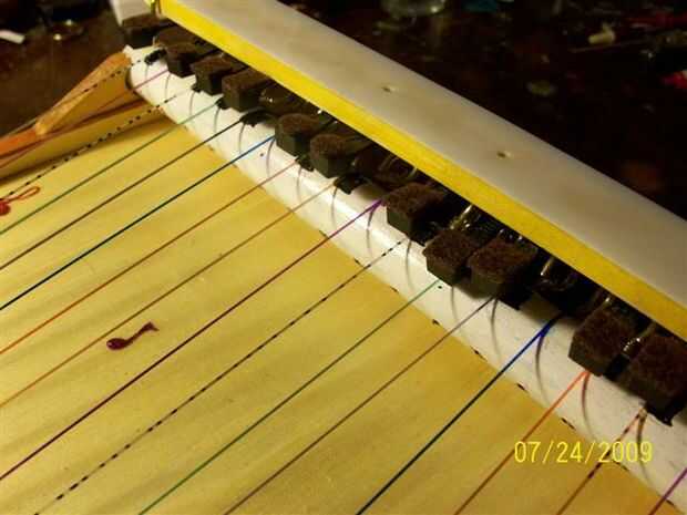 Barra de montaje 5-sintonizador. Utilizar un 3/4. Varilla de ø buena calidad. Taladre 17 agujeros 17 notas espacian 1/2 pulg. aparte con una broca de.093. Comienzan los ganchos de la taza de final cerrado en cada orificio. Puede utilizarse grasa de silicona en la punta antes de empezar. Tornillo hasta el cuello y luego 2 veces más.