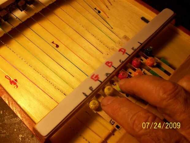 Llaves 3-acorde-que estoy introduciendo un nuevo concepto en cuanto a hacer acordes. Esta cítara es posible eliminar estas claves acordes y acordes deseados se pulsan con 3 llaves de un acorde de las notas intermedias silenciadas con la mano izquierda. Teclas de acordes aquí utilizan plástico café agitando palos seleccionados debido a su elasticidad. Estos palillos son 1/4 pulgadas de ancho y longitudes a 4 pulgadas.