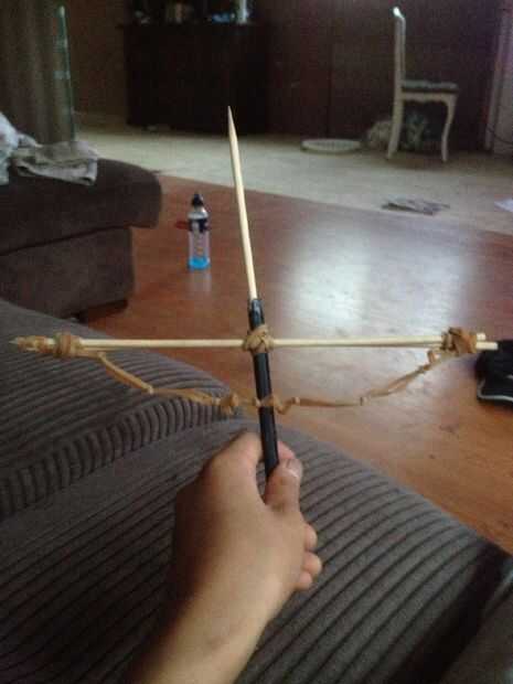 este arco y la flecha es tan fácil, usted puede hacer en 5 minutos!Paso 1: materiales Primero conseguir todos los materiales necesarios para hacer esta cinta de arco y flecha, 3 palillos de dientes y una banda de caucho.Paso 2: Parte principal Take 2