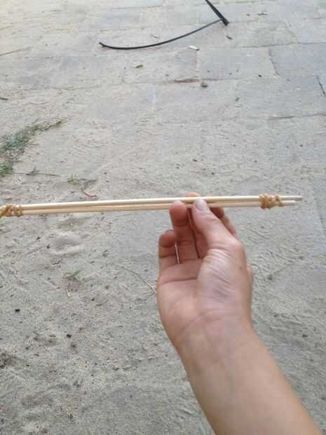 Atar las gomas alrededor de los 2 pinchos