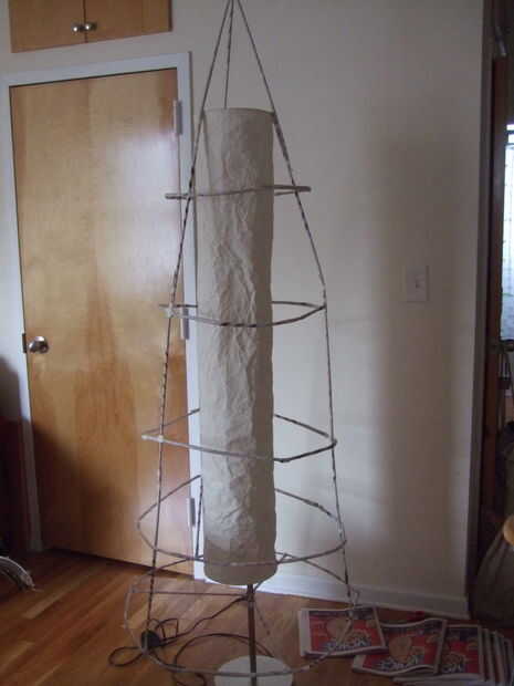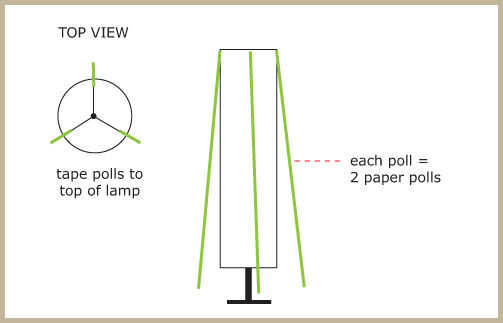 4. tomar tres postes y cinta a la parte superior de la lámpara.