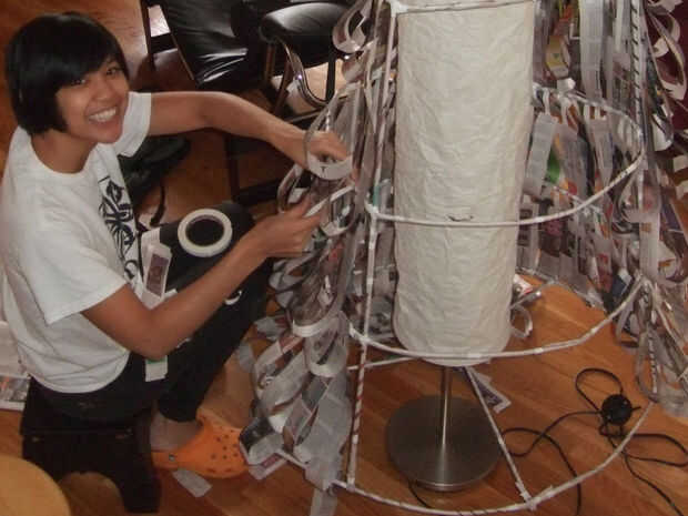 3. Añadir la cinta al esqueleto del árbol con el lado adhesivo hacia fuera.