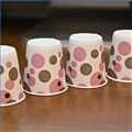 A partir de cuatro de las tazas, medir una media pulgada por debajo del borde y haga una marca. Perforar un agujero en cada taza donde marcar.